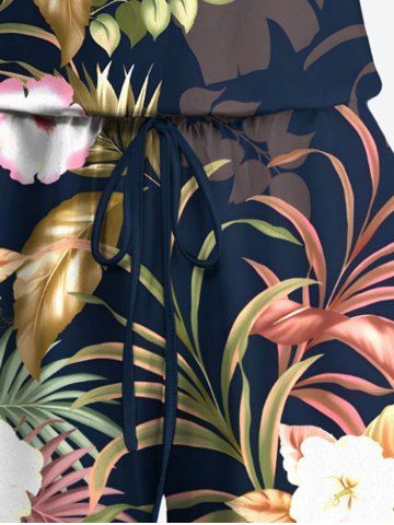 Graphic Pants > Plus Size Tropical Leaf Hibiscus Flower Print Hawaii Drawstring Pocket Romper
