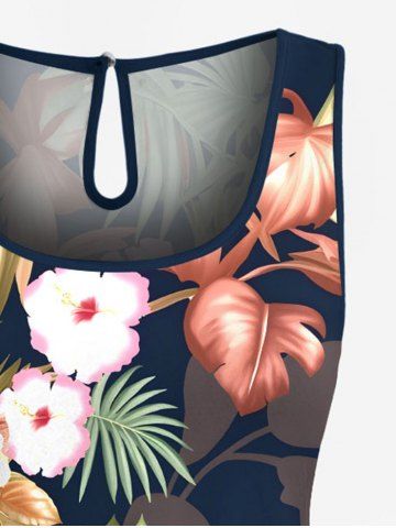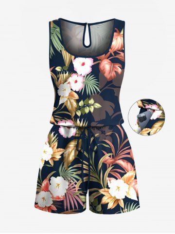 Graphic Pants > Plus Size Tropical Leaf Hibiscus Flower Print Hawaii Drawstring Pocket Romper