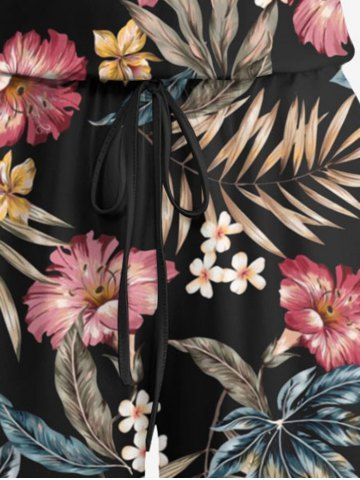 Graphic Pants > Plus Size Tropical Leaf Hibiscus Flower Print Hawaii Drawstring Pocket Romper