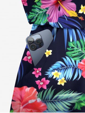 Graphic Pants > Plus Size Tropical Leaf Hibiscus Flower Print Hawaii Drawstring Pocket Romper