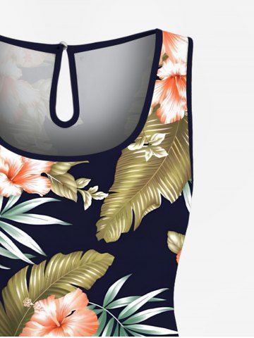 Graphic Pants > Plus Size Tropical Leaf Hibiscus Flower Print Hawaii Drawstring Pocket Romper