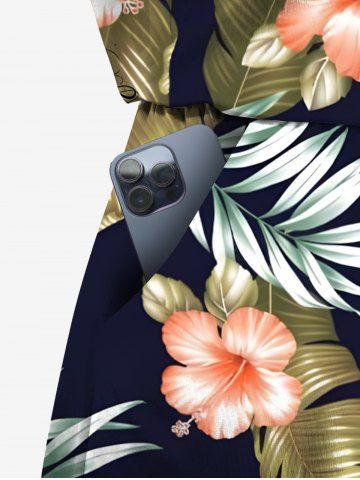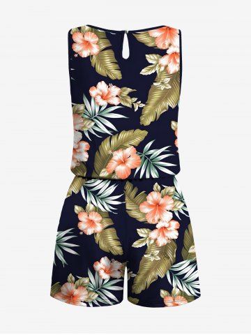 Graphic Pants > Plus Size Tropical Leaf Hibiscus Flower Print Hawaii Drawstring Pocket Romper