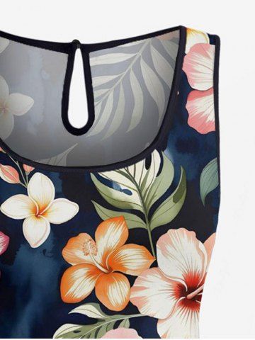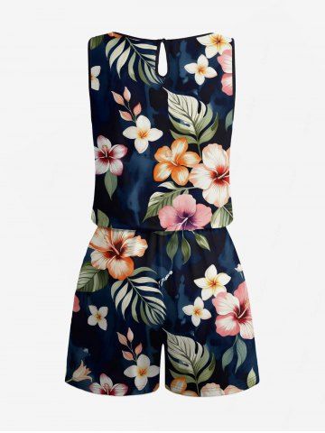 Graphic Pants > Plus Size Tropical Leaf Hibiscus Flower Print Hawaii Drawstring Pocket Romper