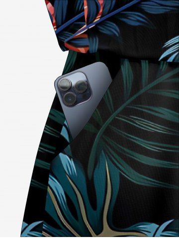 Plus Size Tropical Leaf Hibiscus Flower Print Hawaii Drawstring Pocket Romper - Deep Green - 3x