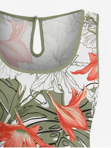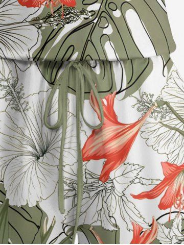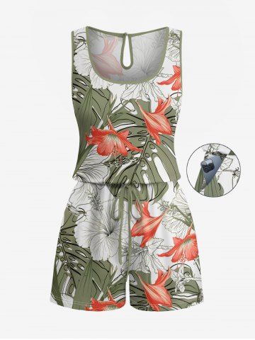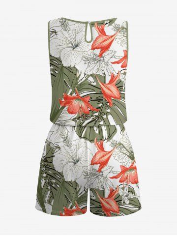 Graphic Pants > Plus Size Tropical Leaf Hibiscus Flower Print Hawaii Drawstring Pocket Romper