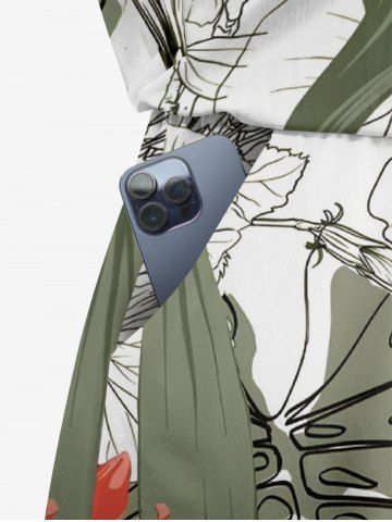 Plus Size Tropical Leaf Hibiscus Flower Print Hawaii Drawstring Pocket Romper - Light Green - Xxs