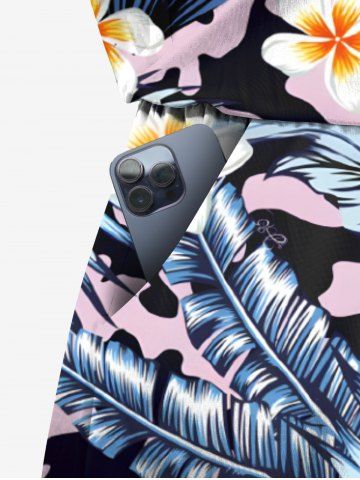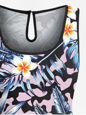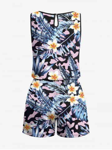 Plus Size Tropical Leaf Hibiscus Flowers Print Cinched Hawaii Romper - Multi-a - M