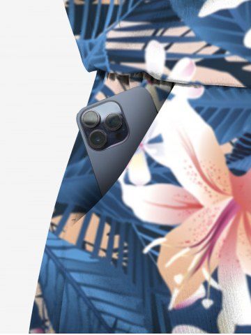 Plus Size Tropical Leaf Hibiscus Flowers Print Cinched Hawaii Romper - Blue - L