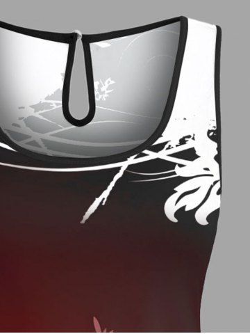 Plus Size Tropical Leaf Ombre Colorblock Print Cinched Hawaii Romper - Deep Red - Xs