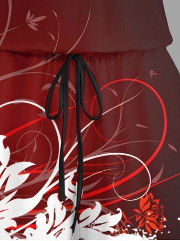 Plus Size Tropical Leaf Ombre Colorblock Print Cinched Hawaii Romper - Deep Red - 4x