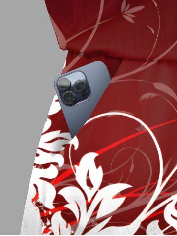 Plus Size Tropical Leaf Ombre Colorblock Print Cinched Hawaii Romper - Deep Red - 6x