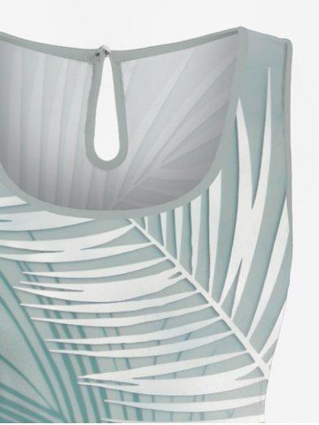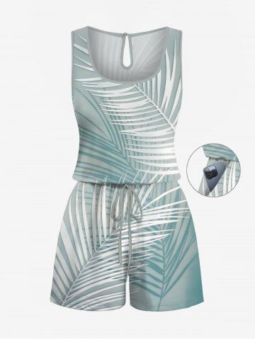 Plus Size Tropical Leaf Ombre Print Cinched Hawaii Romper - Light Green - S