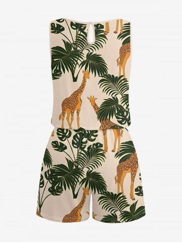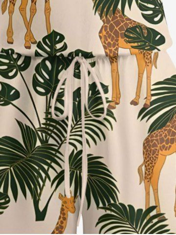 Graphic Pants > Plus Size Tropical Leaf Plant Giraffe Print Hawaii Drawstring Pocket Romper