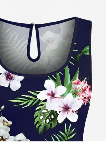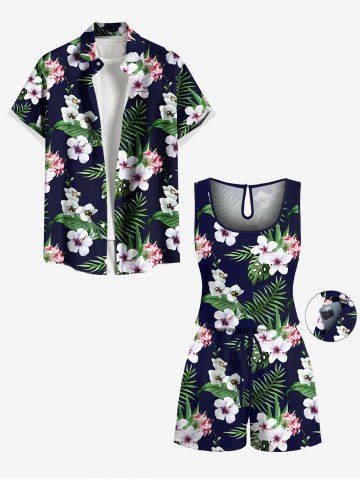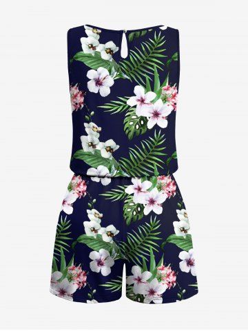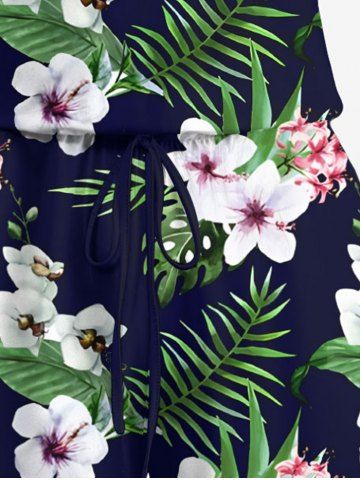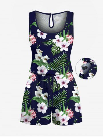 Graphic Pants > Plus Size Tropical Leaves Floral Print Hawaii Drawstring Pocket Jumpsuit