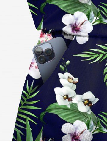 Plus Size Tropical Leaves Floral Print Hawaii Drawstring Pocket Jumpsuit - Black - 6x