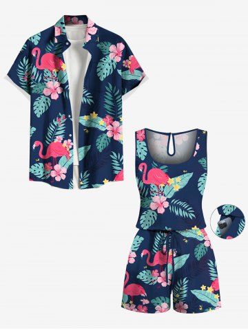 Graphic Pants > Plus Size Tropical Leaf Hibiscus Flower Flamingo Print Hawaii Pocket Drawstring Romper