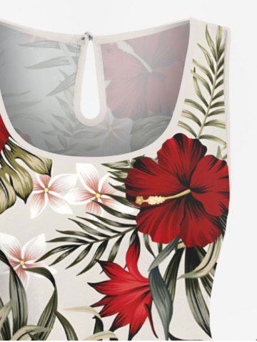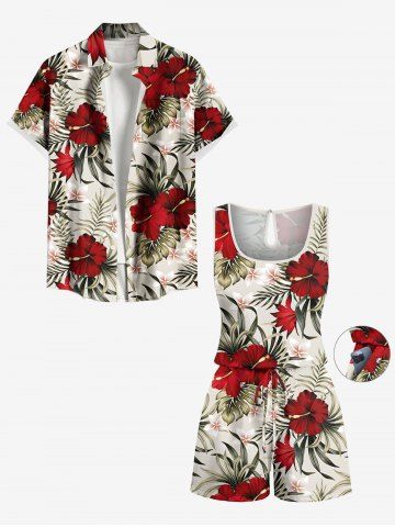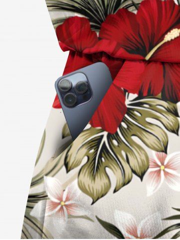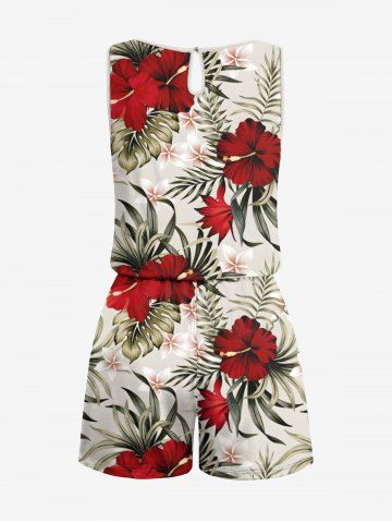 Graphic Pants > Plus Size Tropical Leaf Hibiscus Flower Print Hawaii Drawstring Pocket Romper