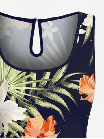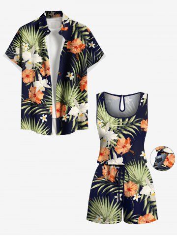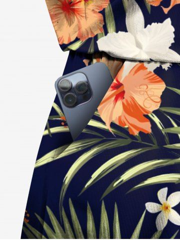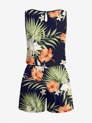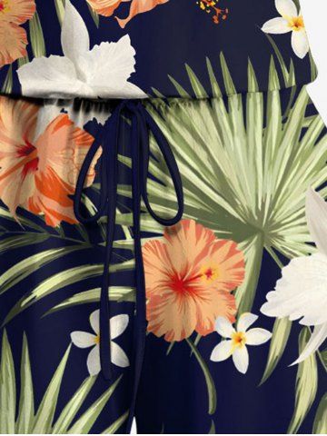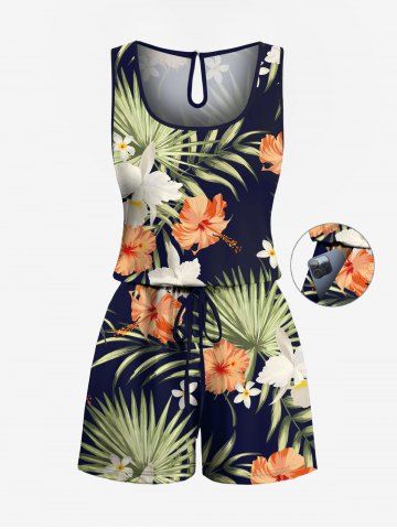 Graphic Pants > Plus Size Tropical Leaf Hibiscus Flower Print Hawaii Pocket Drawstring Romper