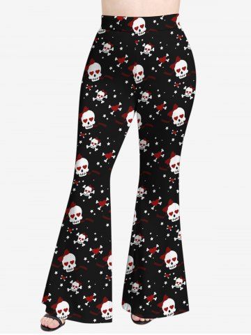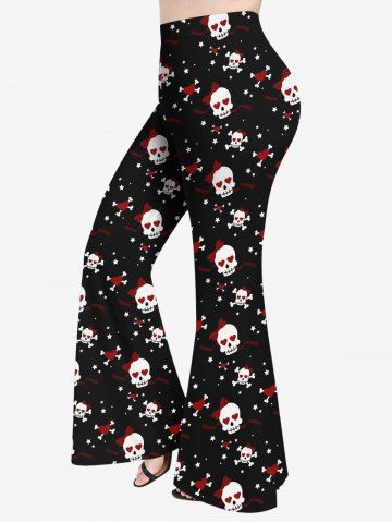 Plus Size Valentine's Day Skulls Skeleton Heart Stars Ribbons Print Flare Pants - Black - Xs