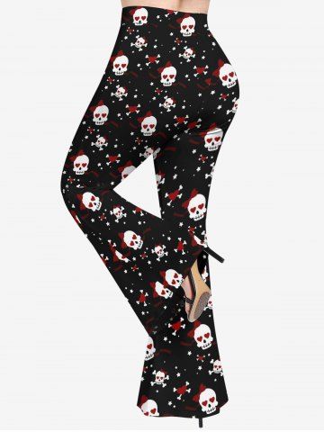 Plus Size Valentine's Day Skulls Skeleton Heart Stars Ribbons Print Flare Pants - Black - 1x