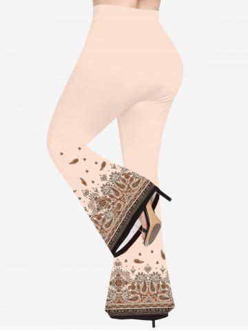 Plus Size Vintage Floral Graphic Striped Paisley Print Pull On Flare Pants - Beige - L