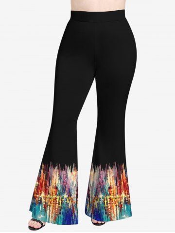 Plus Size Wash and Ink Painting Print Pull On Flare Pants - Black - L