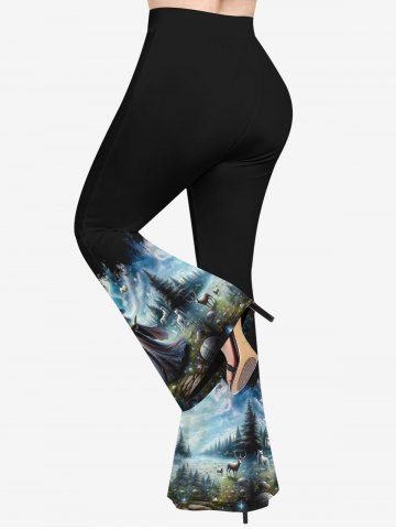 Plus Size Wizard Grassland Elk Pigeon Sky Print Ombre Flare Pants - Black - 1x