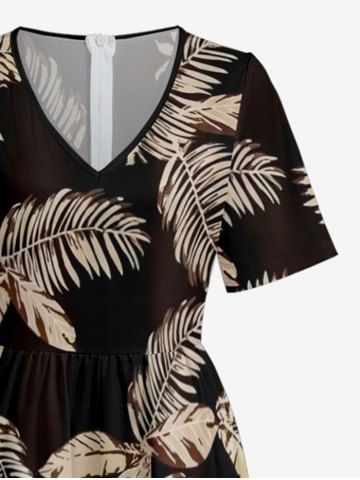 Tropical Leaf Print V Neck Hawaii Wide Leg Jumpsuit - Tan - Xs