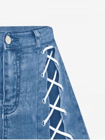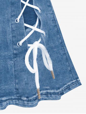 f*****353D Checkered Jeans And Figure Print T-Shirt and 3D Jeans Lace Up Print Skirt Plus Size OutfitColor: BLUEgreat fit and absolutely adorable. soft material and well made