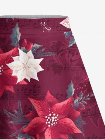 Plus Size Christmas Ombre Flower Leaf Print Split A Line Skirt - Red Wine - S