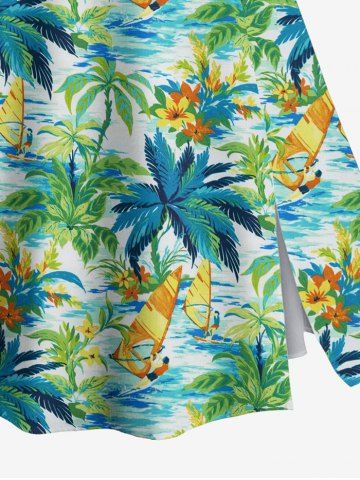 Plus Size Coconut Tree Hibiscus Flower Sea Surfer Print Hawaii Split A Line Skirt - Green - 5x