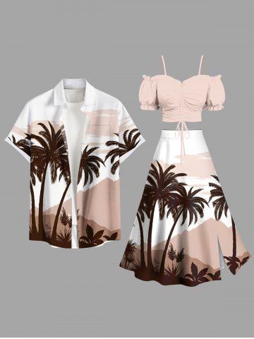 Plus Size Coconut Tree Mountain Cloud Print Hawaii Split A Line Skirt - Coffee - 3x