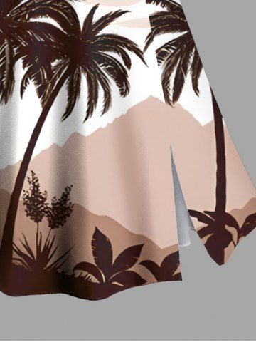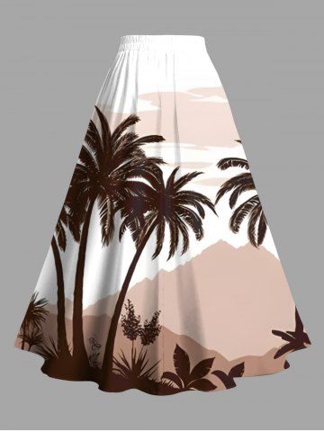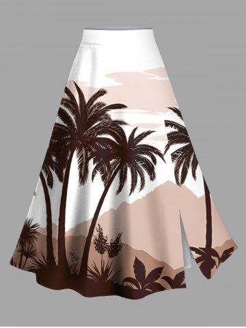 Plus Size Coconut Tree Mountain Cloud Print Hawaii Split A Line Skirt - Coffee - 5x