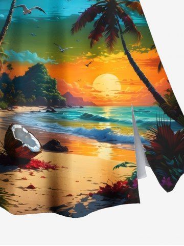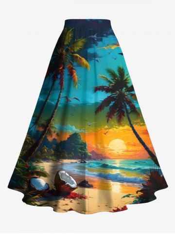 Graphic Skirts > Plus Size Coconut Tree Sea Beach Seascape Print Hawaii Split A Line Skirt