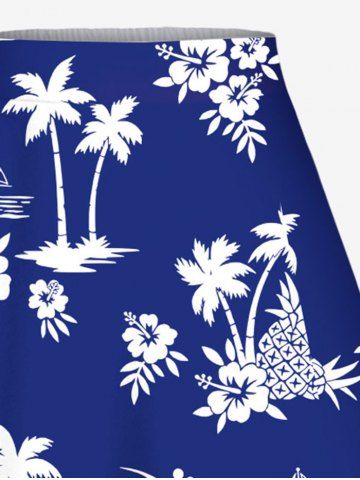 Plus Size Coconut Tree Seascape Flowers Pineapple Print Split Hawaii Skirt - Blue - L
