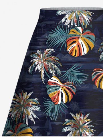 Plus Size Colorful Coconut Tree Tropical Leaves Print Hawaii Split A Line Skirt - Black - Xs