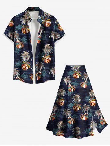 Plus Size Colorful Coconut Tree Tropical Leaves Print Hawaii Split A Line Skirt - Black - 1x
