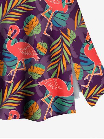 Graphic Skirts > Plus Size Colorful Tropical Leaf Flamingo Print Hawaii Split A Line Skirt