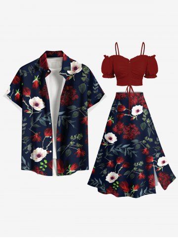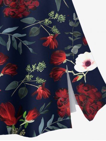 Plus Size Flower Leaf Branch Print Hawaii Split A Line Skirt - Black - M
