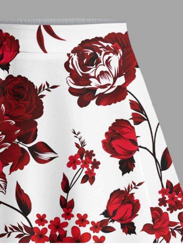 Plus Size Flower Leaf Branch Print Hawaii Split A Line Skirt - Red - 5x