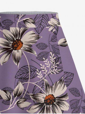 Plus Size Flower Leaf Branch Print Hawaii Split A Line Skirt - Light Purple - 6x