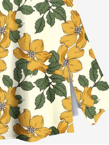 Plus Size Flower Leaf Print Hawaii Split A Line Skirt - Beige - 2x