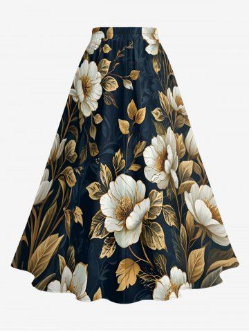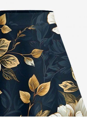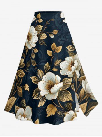 Graphic Skirts > Plus Size Flower Leaf Print Hawaii Split A Line Skirt