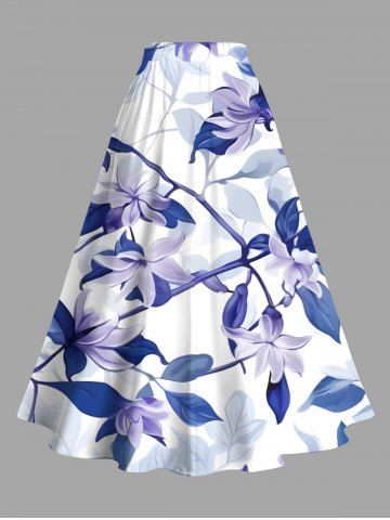 Plus Size Flowers Leaf Print Hawaii Skirt - Blue - 2x