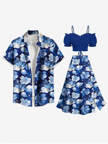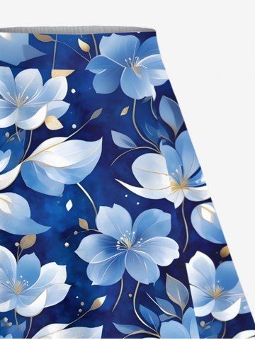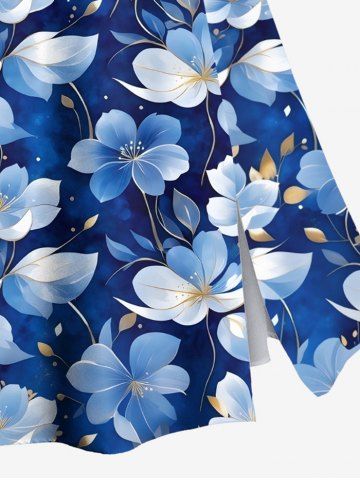 Plus Size Flowers Leaf Print Split Hawaii Skirt - Blue - 1x