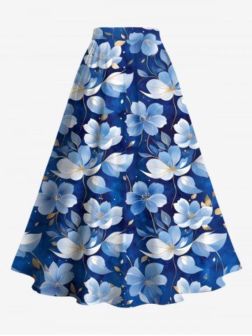 Plus Size Flowers Leaf Print Split Hawaii Skirt - Blue - 5x
