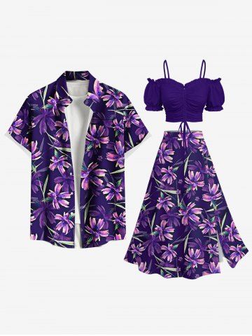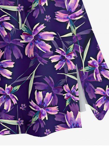 Plus Size Flowers Leaf Print Split Hawaii Skirt - Black - 1x