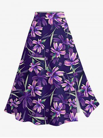 Graphic Skirts > Plus Size Flowers Leaf Print Split Hawaii Skirt