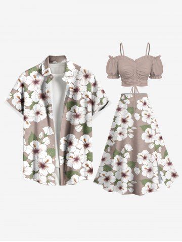 Plus Size Flowers Leaf Print Split Hawaii Skirt - Tan - L