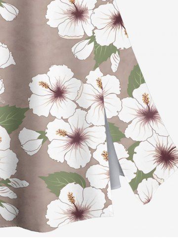 Plus Size Flowers Leaf Print Split Hawaii Skirt - Tan - 5x